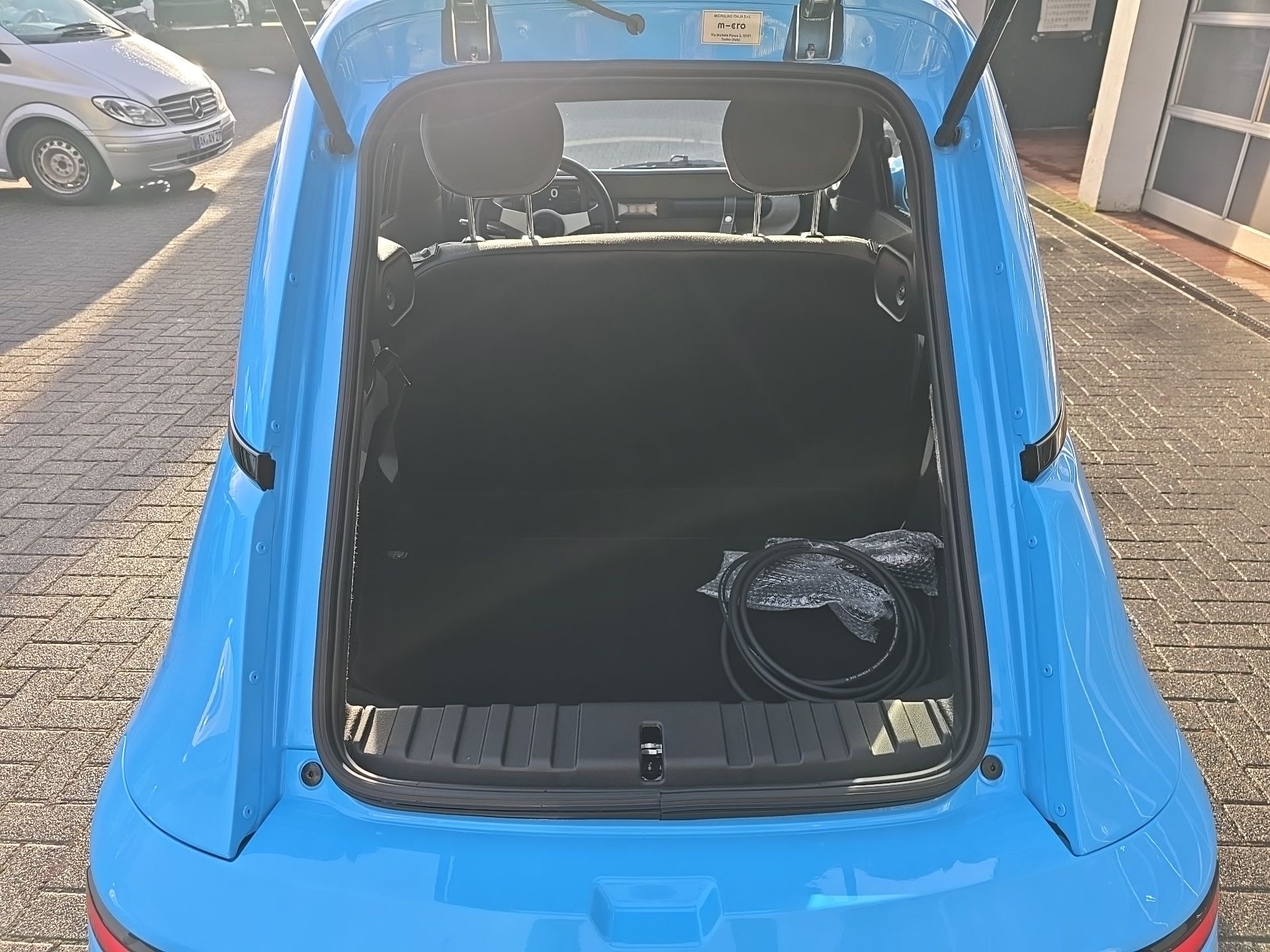Zum Verkauf steht ein moderner Microlino in der eleganten Farbe Venice Blue. Das Fahrzeug verbindet Retro-Charme mit innovativer Elektromobilität und ist ideal für die Stadt und kurze Überlandstrecken.